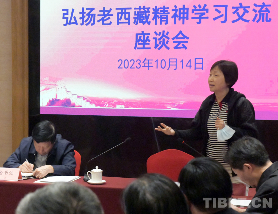 圖為北京建藏援藏工作者協(xié)會(huì)副會(huì)長張小康在協(xié)會(huì)召開的“弘揚(yáng)老西藏精神學(xué)習(xí)交流座談會(huì)”上介紹“老西藏精神”(唐召明2023年10月14日攝)