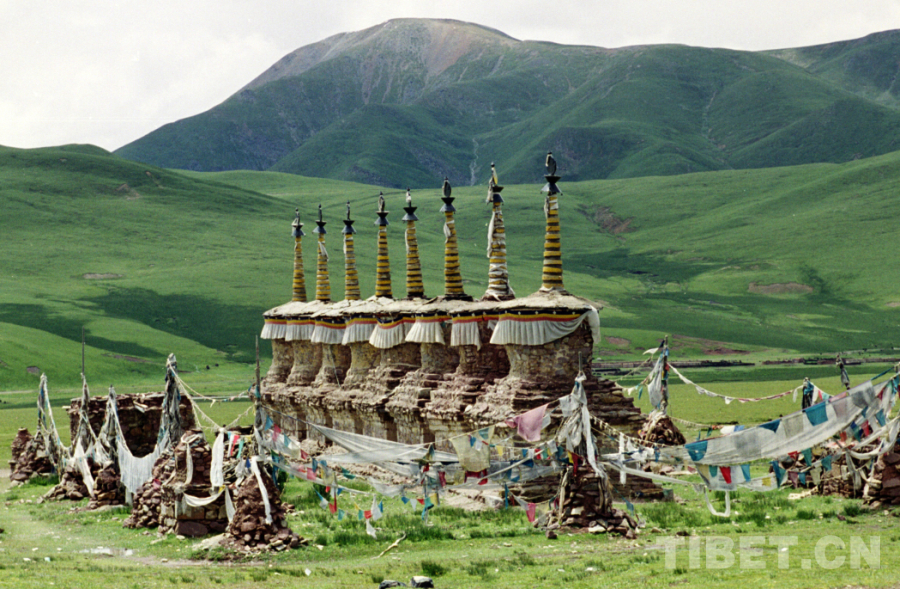 圖為當(dāng)雄至那曲不遠處,公路邊所立的八座白塔(唐召明1998年攝)