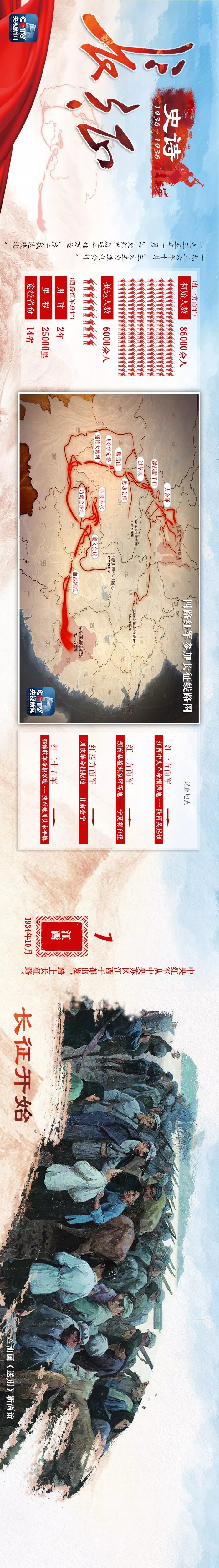 今年正值紅軍長征出發(fā)85周年,也是新中國成立70周年。今天,“壯麗70年·奮斗新時(shí)代——央媒記者再走長征路”活動(dòng)啟動(dòng),讓我們用一張圖回顧波瀾壯闊的長征史詩。