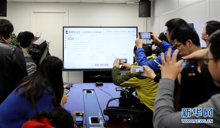 媒體記者在上海證券交易所的科創(chuàng)板上市審核中心會議室內(nèi)觀看上市審核系統(tǒng)操作流程演示(3月22日攝)。新華社記者 方喆 攝