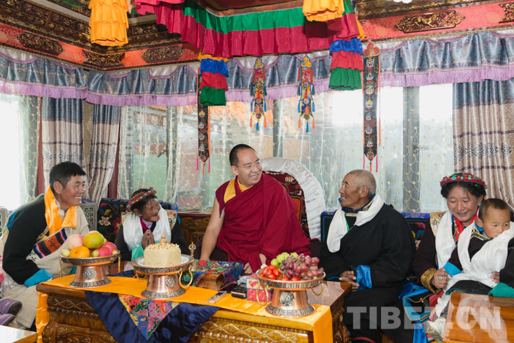 圖為十一世班禪與三崗村村民尼瑪頓珠一家親切交談 攝影:鄭朔