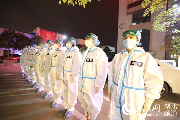 女子抗疫先鋒隊換好衣服,集結(jié)完畢準(zhǔn)備進(jìn)入隔離區(qū)(襄陽特警供圖)