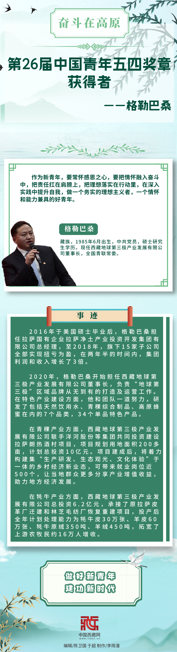 長圖|【奮斗在高原】第26屆中國青年五四獎(jiǎng)?wù)芦@得者——格勒巴桑