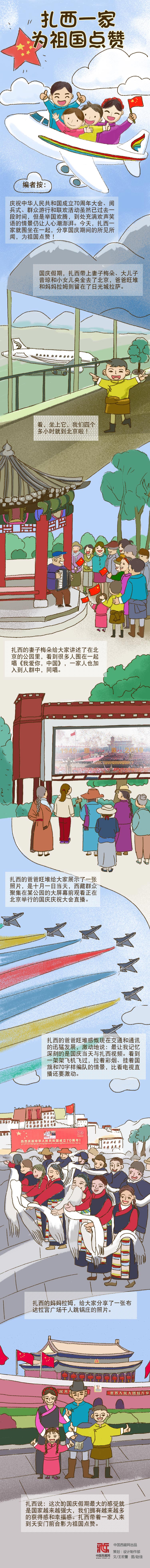手繪丨扎西一家為祖國點贊