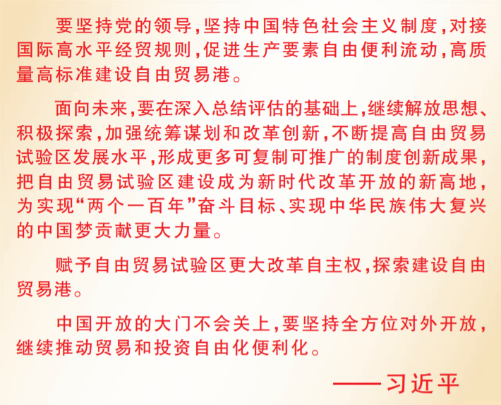 “建設自由貿(mào)易試驗區(qū)是黨中央在新時代推進改革開放的一項戰(zhàn)略舉措,在我國改革開放進程中具有里程碑意義?!?/p>