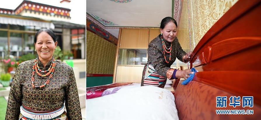 拼版照片:左圖為西藏阿里地區(qū)札達(dá)縣札布讓村村民金珠德吉在自家的家庭旅館;右圖為金珠德吉在家庭旅館里打掃衛(wèi)生。古格王國遺址坐落于札布讓村境內(nèi)。近年來,隨著札達(dá)縣“旅游興縣”政策的推進(jìn),當(dāng)?shù)卮迕袂山琛扒旯鸥駳v史”大做文化旅游文章,每年吸引眾多游客前來參觀,金珠德吉就勢經(jīng)營起家庭旅館?,F(xiàn)在,金珠德吉的家庭旅館已有30多個床位,因設(shè)施完善、衛(wèi)生良好還被村里評為“金星級”家庭旅館。見到金珠德吉的家庭旅館生意火爆,村民們紛紛效仿。如今,這個只有36戶144人的小村莊有32戶人家都開了家庭旅館(7月26日攝)。 新華社記者 詹彥 攝