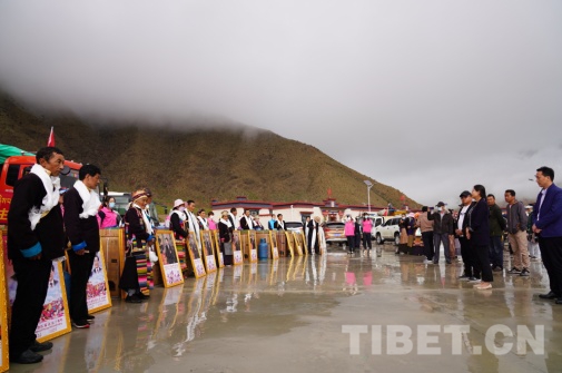 經(jīng)過一個多小時的路程,上午11時30分,車隊駛入多頗章鄉(xiāng)嘎東團結新村搬遷點喜遷儀式現(xiàn)場。在喜遷儀式現(xiàn)場,早早就到來的瓊結鎮(zhèn)扶貧干部們,端著甘甜的青稞酒和象征五谷豐登的切瑪盒,向每位搬遷戶群眾獻上潔白的哈達。搬遷戶們新的生活將從這里開始。