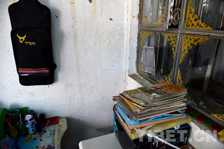 圖為索南益西的小孫子雍忠尼瑪在陽光房里擺放的書本和學習用具 攝影:王媛媛