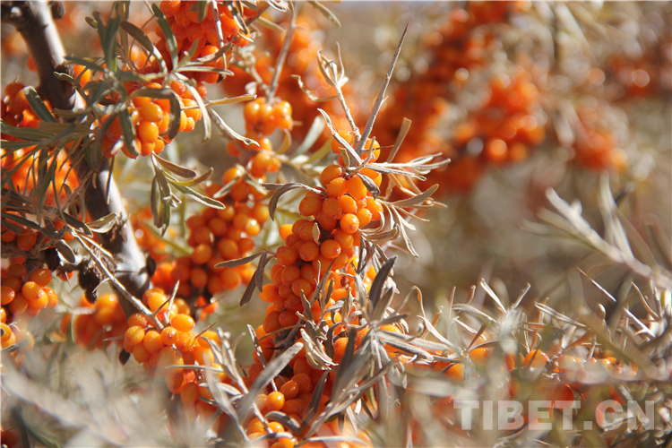 中國西藏網(wǎng)訊 在西藏自治區(qū)阿里地區(qū)札達縣,沿著象泉河兩岸,一片接一片的沙棘林郁郁蔥蔥,橙紅色的沙棘果掛滿枝頭。沙棘是一種小喬灌木,被譽為“天賜神物,高原圣果”。
