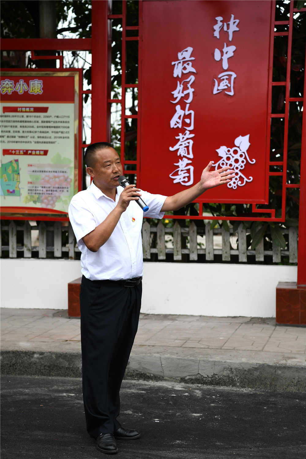 在四川省眉山市彭山區(qū)果園村,村黨總支書(shū)記李永偉在介紹果園村葡萄產(chǎn)業(yè)發(fā)展情況(6月11日攝)。新華社記者 王曦 攝