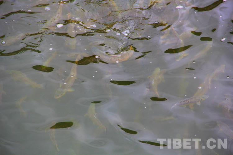 圖為養(yǎng)殖池內(nèi)的亞東鮭魚 攝影:王茜