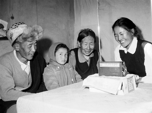 1978年 拉薩城關區(qū)東方紅居委會強巴群宗一家在收聽有關十一屆三中全會的廣播消息。
