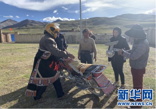 牧民群眾積極與駐村工作隊(duì)的太陽(yáng)能路燈安裝工作。新華網(wǎng)發(fā) 旦增卓瑪攝