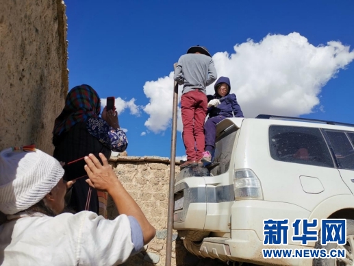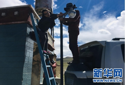駐村工作隊(duì)及巴扎鄉(xiāng)工作人員積極調(diào)試設(shè)備,為后期路燈安裝做準(zhǔn)備。新華網(wǎng)發(fā) 張峽攝