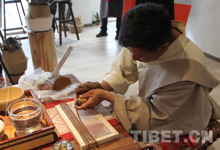 圖為藏香非遺傳承人展示制香 攝影:王茜
