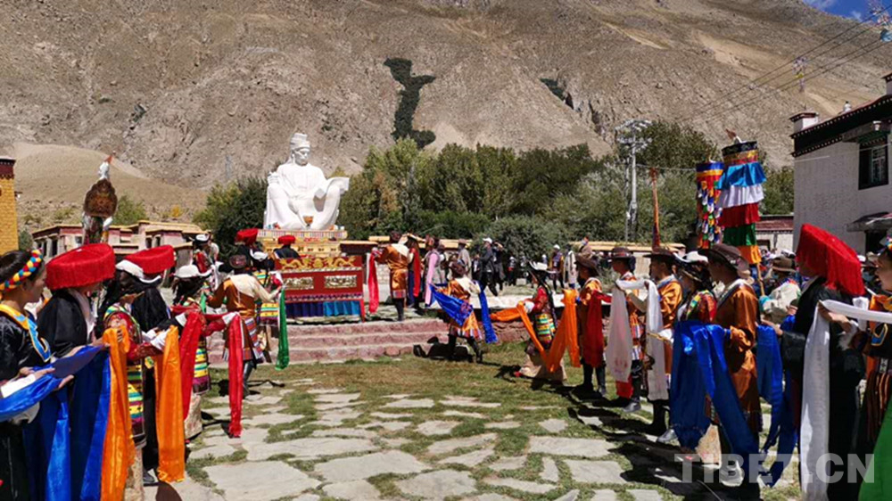 圖為藏族群眾為吞彌?桑布扎塑像敬獻(xiàn)哈達(dá) 攝影:王茜