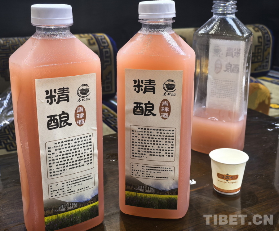 圖為強吉村的西藏瓊結(jié)羌?xì)J精釀酒業(yè)有限公司研發(fā)的天然呈粉紅色的低度青稞酒 攝影:劉莉
