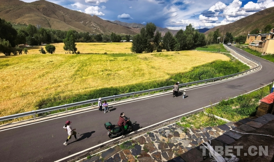恬靜美麗的鄉(xiāng)村,豐收的季節(jié),徜徉在強吉村的歷史與現(xiàn)實之中,一切普通又不普通。 (中國西藏網(wǎng) 記者/劉莉)