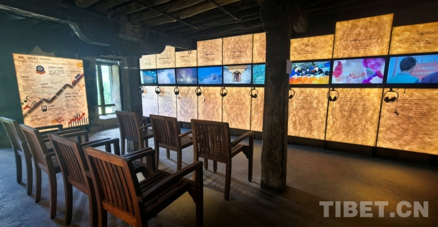 圖為強吉莊園公共文化活動中心二層通過影音設(shè)備講述新時代為建設(shè)社會主義現(xiàn)代化新西藏做出杰出貢獻的人們的故事 攝影:劉莉