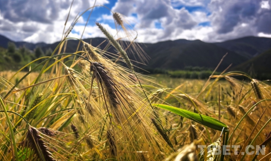 圖為強吉村壓彎了枝條的青稞穗 攝影:劉莉