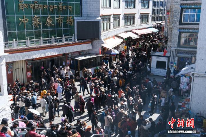 圖為2026年2月13日,藏歷新年前夕,拉薩傳統(tǒng)年貨市場(chǎng)沖賽康市場(chǎng)周邊人流如織。江飛波 攝
