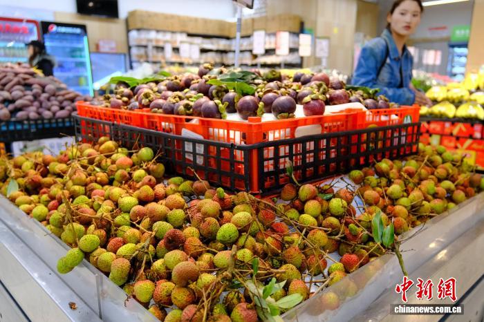 資料圖為2025年5月27日,西藏拉薩一連鎖超市銷售來(lái)自海南的“妃子笑”荔枝。江飛波 攝