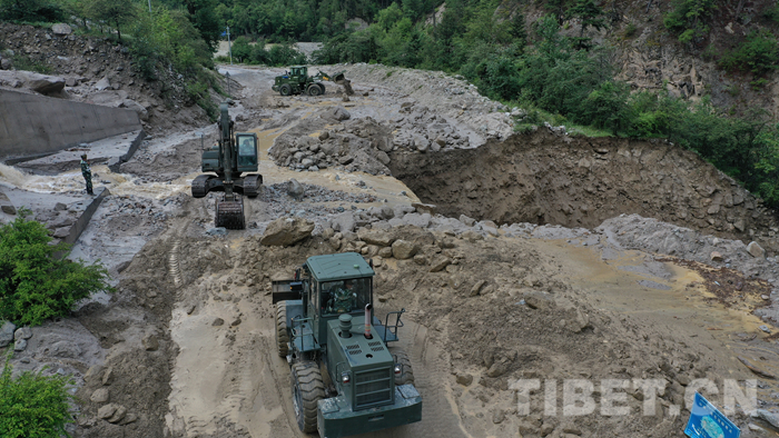 武警官兵緊急搶通川藏線泥石流災(zāi)害道路