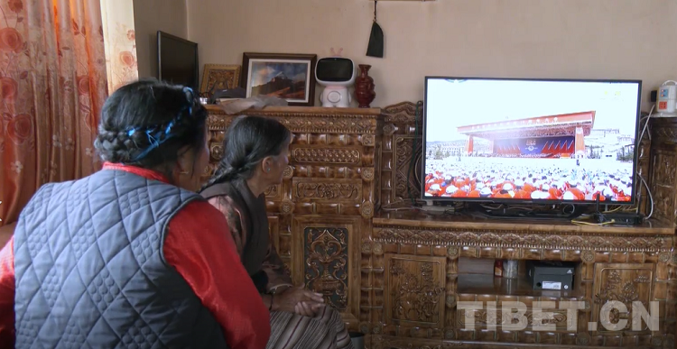 圖為阿里地區(qū)各族群眾正在收聽收看慶祝慶祝大會實況 來源:阿里廣播電視臺