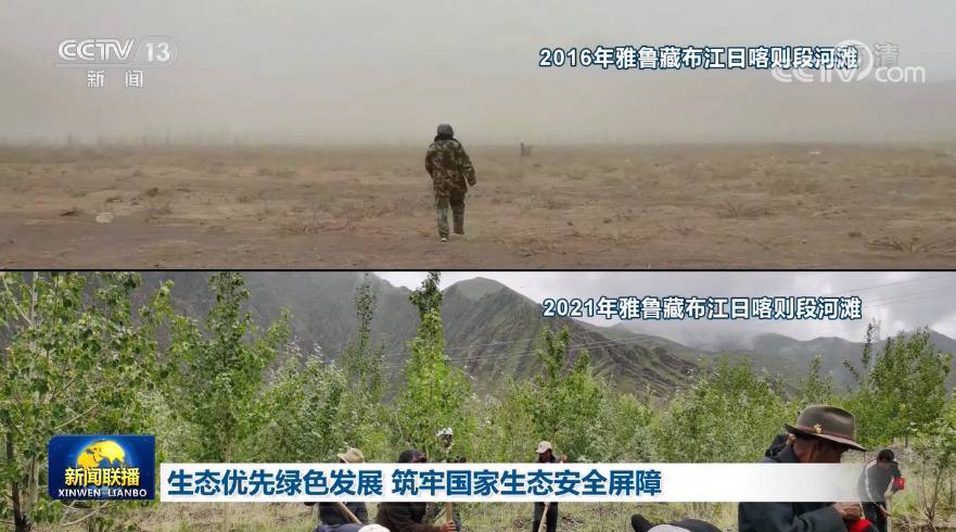 雅魯藏布江是我國最長的高原河流,也被譽(yù)為西藏人民的“母親河”。而受到高原氣候、地質(zhì)等環(huán)境影響,雅江流域曾出現(xiàn)過河灘荒漠化的情況。眼前這兩張照片拍攝于雅江上游河灘的同一位置,五年的時間,荒漠變成森林,讓拍攝者次仁歐珠感慨不已。