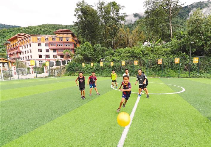 圖為西藏自治區(qū)林芝市墨脫縣墨脫鎮(zhèn)墨脫村的孩子們?cè)诩腋浇淖闱驁錾峡鞓返靥咦闱?攝影:西藏日?qǐng)?bào)記者格桑吉美