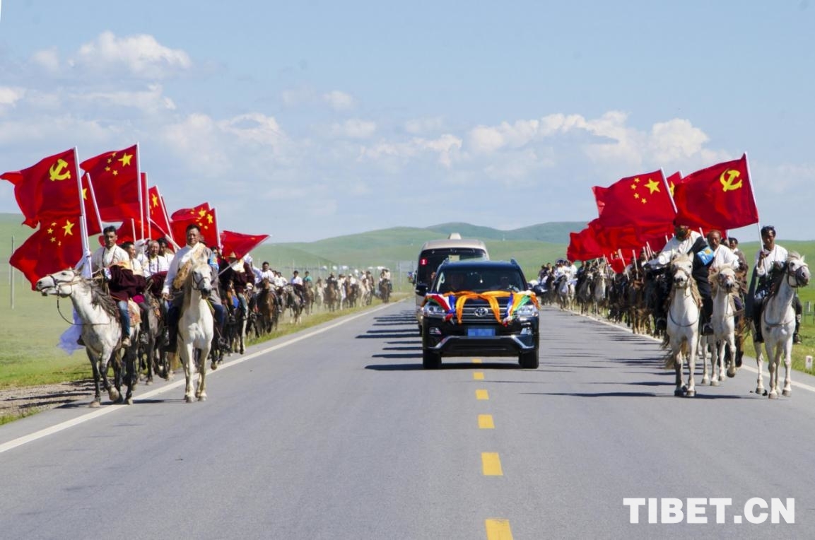 圖為調(diào)研結(jié)束時,牧民騎馬為班禪送行 攝影:歐帆