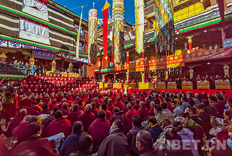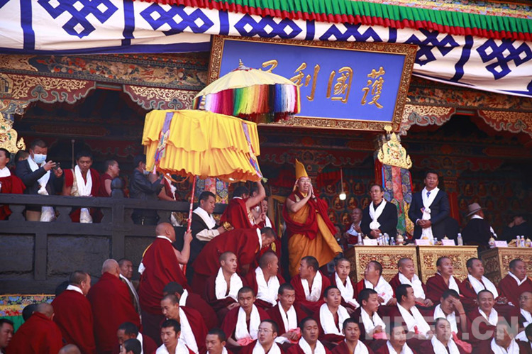 中央統(tǒng)戰(zhàn)部、國(guó)家宗教事務(wù)局賀信表示,十一世班禪自1995年坐床以來(lái),在黨中央的親切關(guān)懷下,勤學(xué)苦修、廣聞深思,解行并進(jìn),宗教學(xué)識(shí)日益精深。特別是近日在扎什倫布寺辯經(jīng)法會(huì)上通過(guò)嚴(yán)格考試和答辯考取最高的“嘎欽”學(xué)位,標(biāo)志著十一世班禪在宗教修為上取得重要成果,也充分說(shuō)明了黨的宗教信仰自由政策在西藏得到全面貫徹落實(shí)。祝愿十一世班禪牢記習(xí)近平總書(shū)記的諄諄教導(dǎo),繼承和發(fā)揚(yáng)歷代班禪愛(ài)國(guó)愛(ài)教、護(hù)國(guó)利民的光榮傳統(tǒng),繼續(xù)刻苦學(xué)習(xí)、潛心修行,輔弼社會(huì)、饒益眾生、莊嚴(yán)國(guó)土、利樂(lè)有情,在維護(hù)祖國(guó)統(tǒng)一和民族團(tuán)結(jié)、堅(jiān)持藏傳佛教中國(guó)化方向、促進(jìn)藏傳佛教與社會(huì)主義社會(huì)相適應(yīng)上做出新的貢獻(xiàn)。