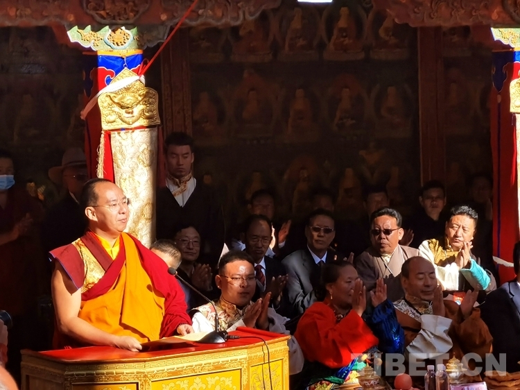 班禪表示,在此,我要向習(xí)近平總書(shū)記、黨中央表示衷心的感謝!向中央統(tǒng)戰(zhàn)部和國(guó)家有關(guān)部委表示衷心的感謝!向西藏自治區(qū)黨委政府和各級(jí)有關(guān)部門(mén)表示衷心的感謝!向扎什倫布寺、拉卜楞寺高僧大德、善知識(shí)表示衷心的感謝!向關(guān)心關(guān)注我的各界朋友、各族信眾表示衷心的感謝!
