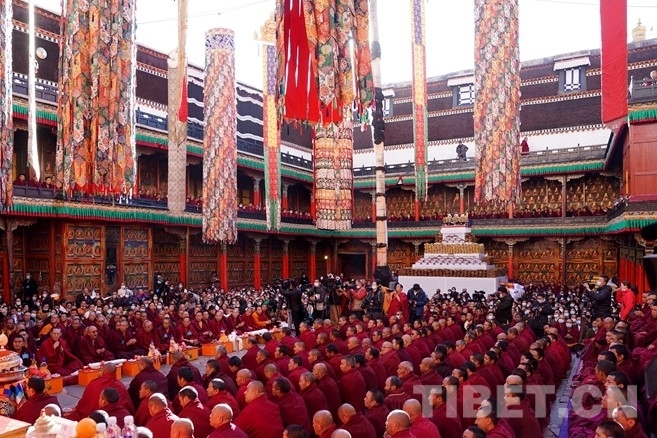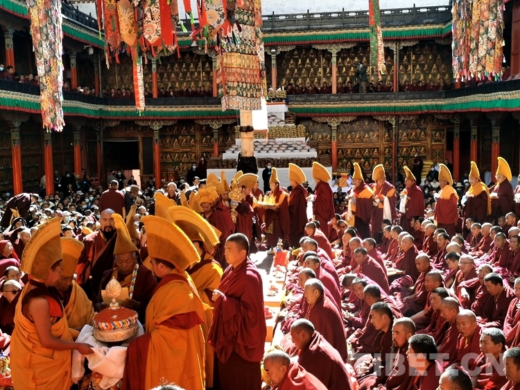 中國(guó)西藏網(wǎng)訊 日前,全國(guó)政協(xié)常委、中國(guó)佛教協(xié)會(huì)副會(huì)長(zhǎng)、中國(guó)佛教協(xié)會(huì)西藏分會(huì)會(huì)長(zhǎng)班禪額爾德尼?確吉杰布在扎什倫布寺順利通過(guò)考核,獲得藏傳佛教格魯派最高學(xué)位之一的“嘎欽”學(xué)位。10月28日上午10時(shí),慶祝班禪獲得“嘎欽”佛學(xué)學(xué)位儀式在西藏自治區(qū)日喀則市扎什倫布寺多加大院舉行,近千名僧尼、信教群眾共慶盛事。