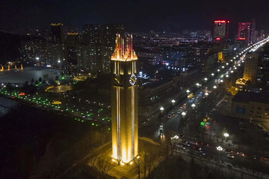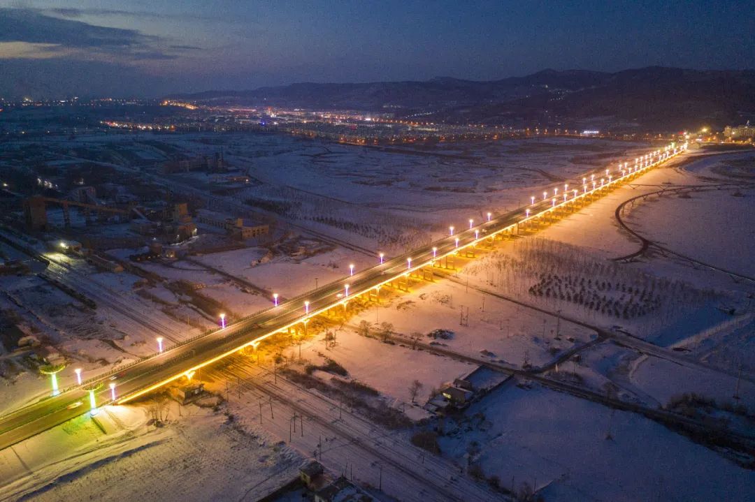 位于七臺河的冠軍橋燈火通明