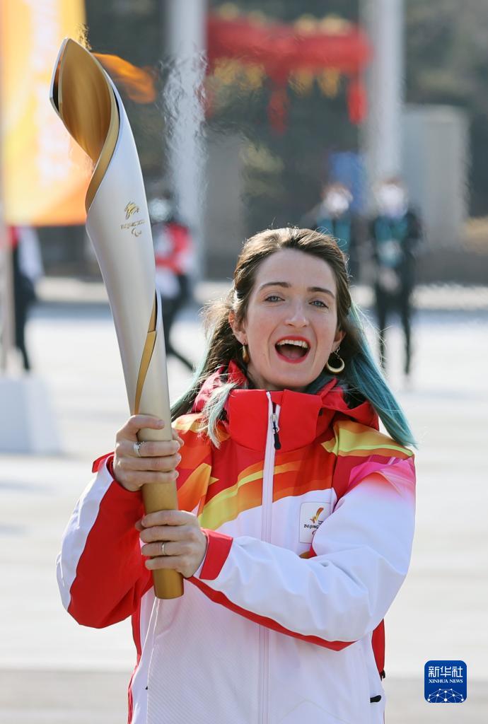 3月3日,火炬手國際殘奧委會(huì)運(yùn)動(dòng)員委員會(huì)委員瑪?shù)倌取P羅尼在傳遞火炬。新華社記者 杜瀟逸 攝