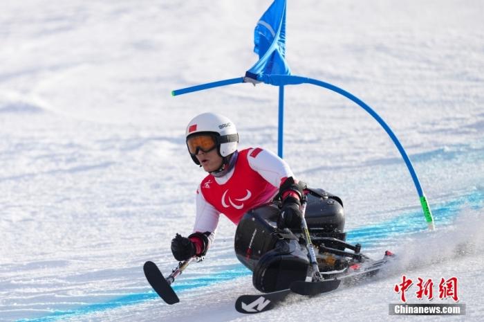 3月10日,中國(guó)選手梁子路比賽中。當(dāng)日,北京2022年冬殘奧會(huì)殘奧高山滑雪男子大回轉(zhuǎn)-坐姿決賽在延慶國(guó)家高山滑雪中心舉行,中國(guó)選手梁子路以2分00秒92的成績(jī)摘得銅牌。 中新社記者 楊華峰 攝