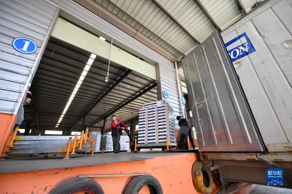 在江西省贛州市南康家具產(chǎn)業(yè)園,工人將即將出口的成品家具裝車(2020年2月26日攝)。新華社記者 胡晨歡 攝