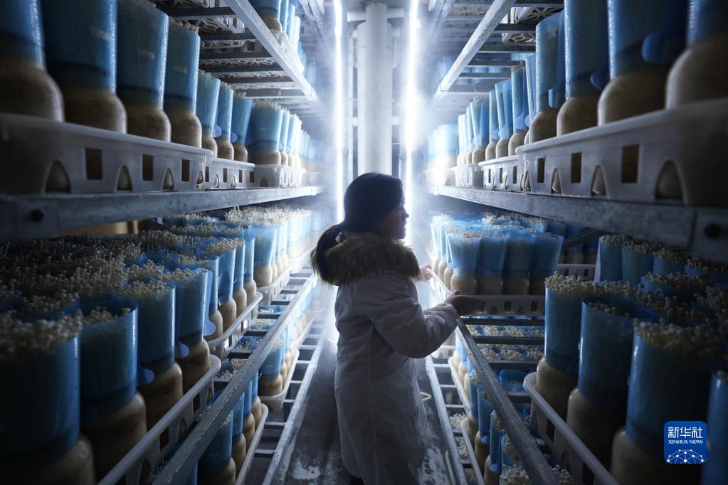 江西省贛州市章貢區(qū)火燃村一家菌菇企業(yè),工人在查看金針菇長勢(2020年11月12日攝)。新華社記者 周密 攝