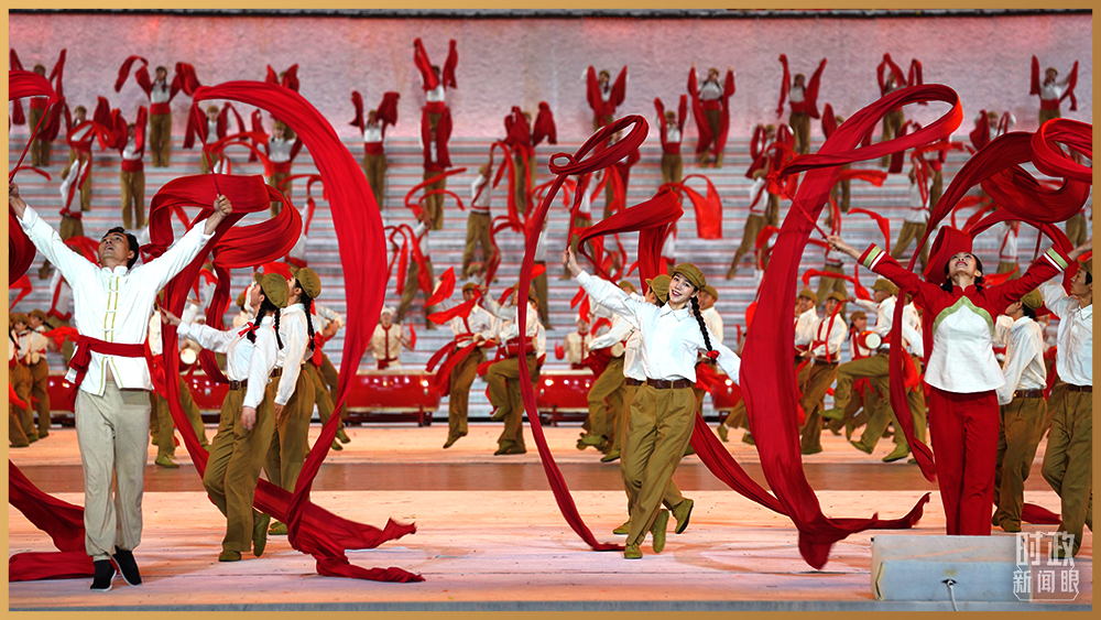 舞蹈《開國大典》回顧了熱火朝天的社會(huì)主義革命和建設(shè)年代。(總臺央視記者魏幫軍拍攝)