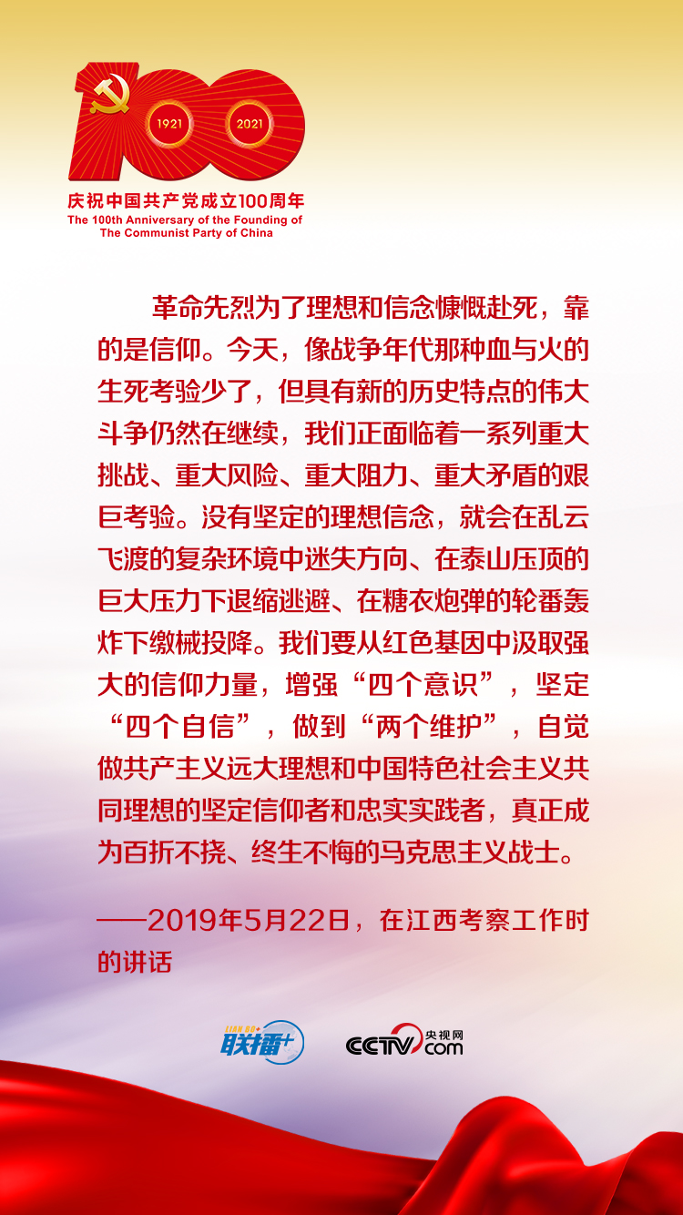 中國(guó)共產(chǎn)黨百年華誕來臨之際,讓我們重溫崢嶸歲月,跟著總書記一起牢記初心使命,在新征程中堅(jiān)守革命信仰,為新時(shí)代全面建設(shè)社會(huì)主義現(xiàn)代化國(guó)家而不懈奮斗。