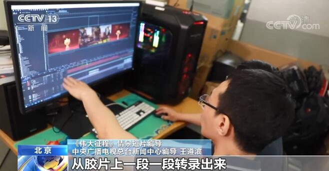 《偉大征程》情景短片編導(dǎo) 中央廣播電視總臺(tái)新聞中心編導(dǎo) 王遵濱:我們總臺(tái)的4K和8K的實(shí)驗(yàn)室做了高質(zhì)量修復(fù),有一些畫(huà)面素材因?yàn)樗嬖谝恍┪锢硇缘倪@種損傷,我們就聯(lián)系了新影廠(chǎng)。然后他們根據(jù)我們成片里用到的鏡頭,選取他們庫(kù)里相應(yīng)的內(nèi)容,從膠片上一段一段轉(zhuǎn)錄出來(lái),我們?cè)龠M(jìn)行節(jié)目的重新制作。