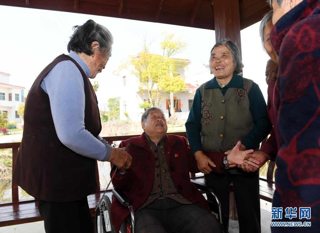 3月28日,馬毛姐回到家鄉(xiāng)安徽省無為市劉渡鎮(zhèn)馬壩村,與當(dāng)年的姐妹們?cè)捈页?。新華社發(fā)(鄭遠(yuǎn) 攝)