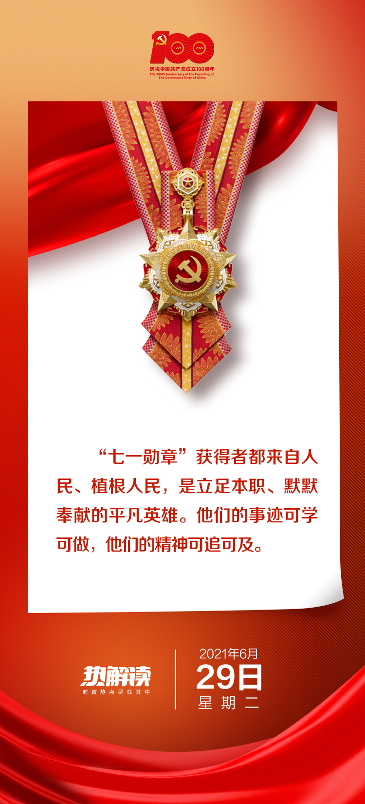 頒授儀式上,習(xí)近平總書記表示:“‘七一勛章’獲得者都來自人民、植根人民,是立足本職、默默奉獻的平凡英雄。”