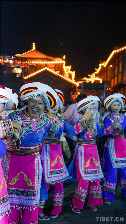 中國(guó)西藏網(wǎng)訊 當(dāng)陣陣涼風(fēng)襲來(lái),暑氣漸消,暮靄沉沉。碧水青山環(huán)抱的阿妹戚托小鎮(zhèn)卻漸漸躁動(dòng)起來(lái),熱騰的火苗將夏夜“點(diǎn)燃”,人們環(huán)繞火把載歌載舞、歡唱高歌,沉醉其中、樂(lè)而忘返。
