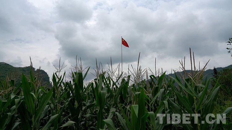圖為玉米地里飄揚(yáng)的五星紅旗 攝影:陳浩力