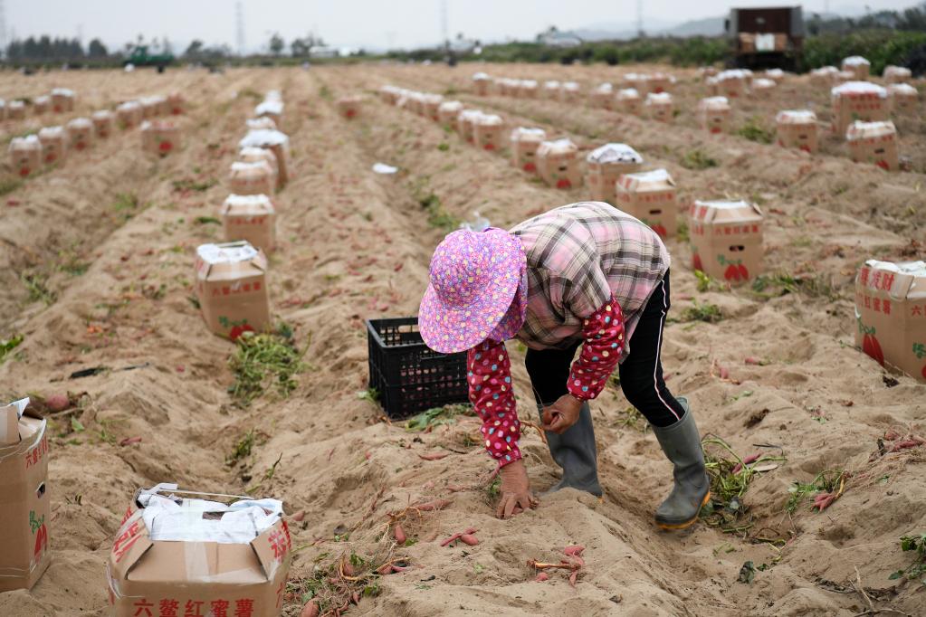 2月9日,在陸豐市碣石鎮(zhèn)滴水村,農(nóng)民在田里收甘薯。新華社記者梁旭 攝