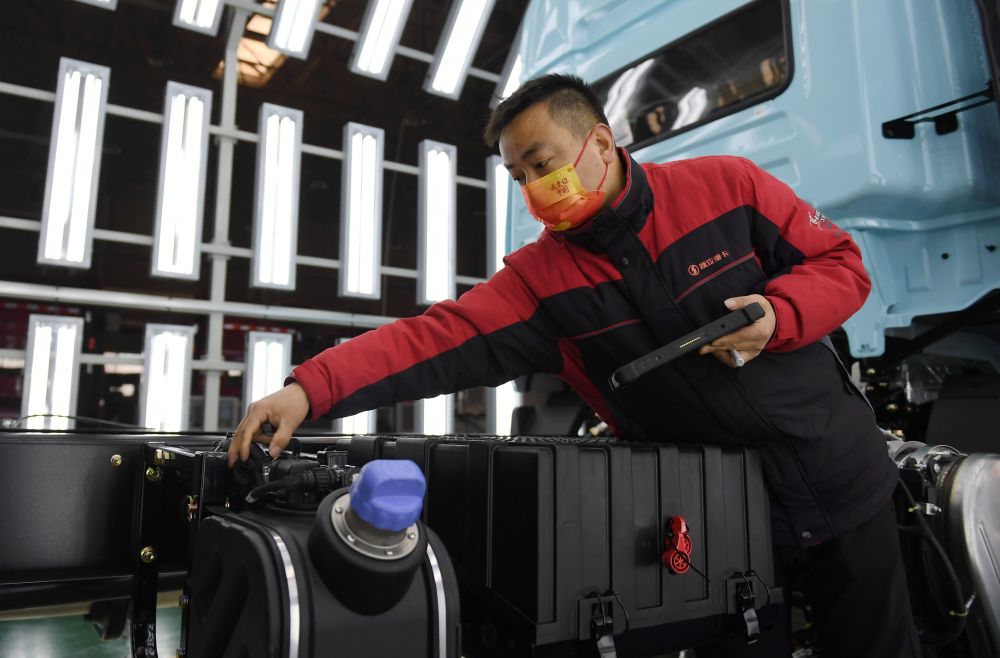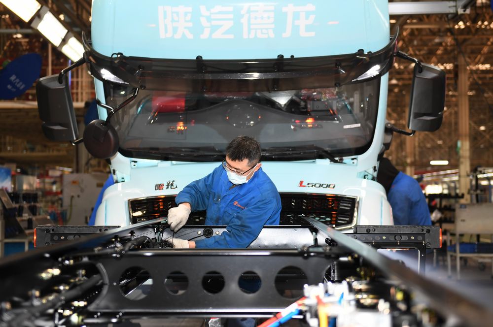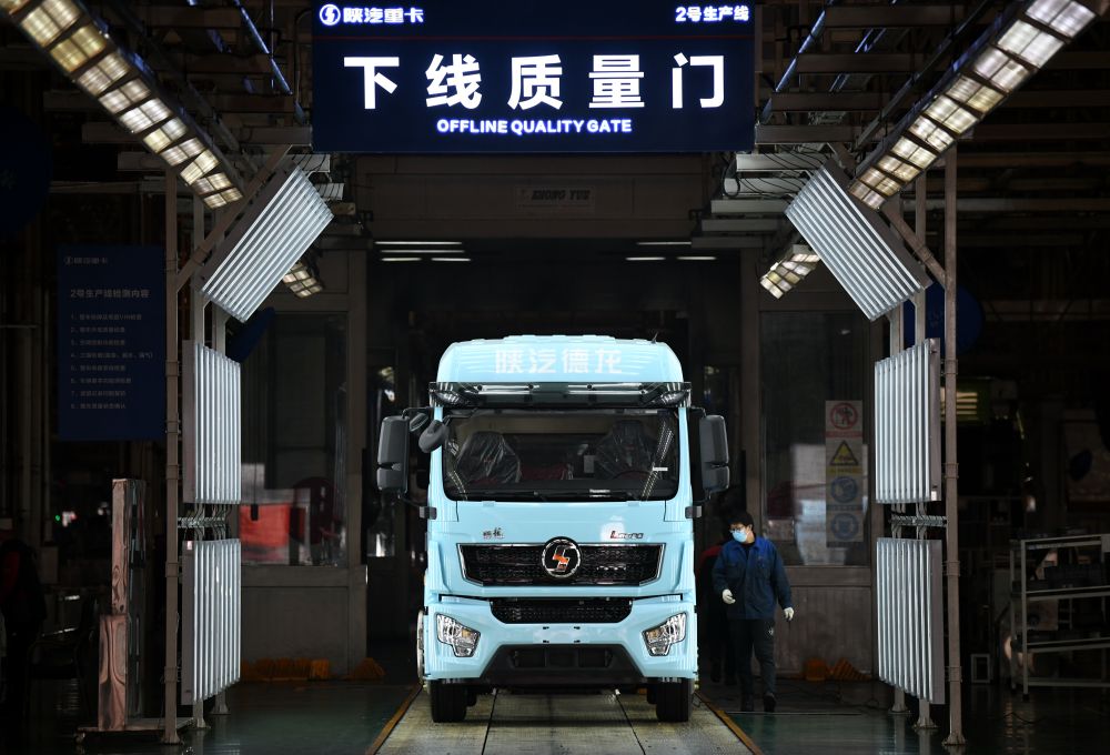1月20日,工作人員在陜西汽車控股集團有限公司總裝車間進(jìn)行重型卡車驗收。