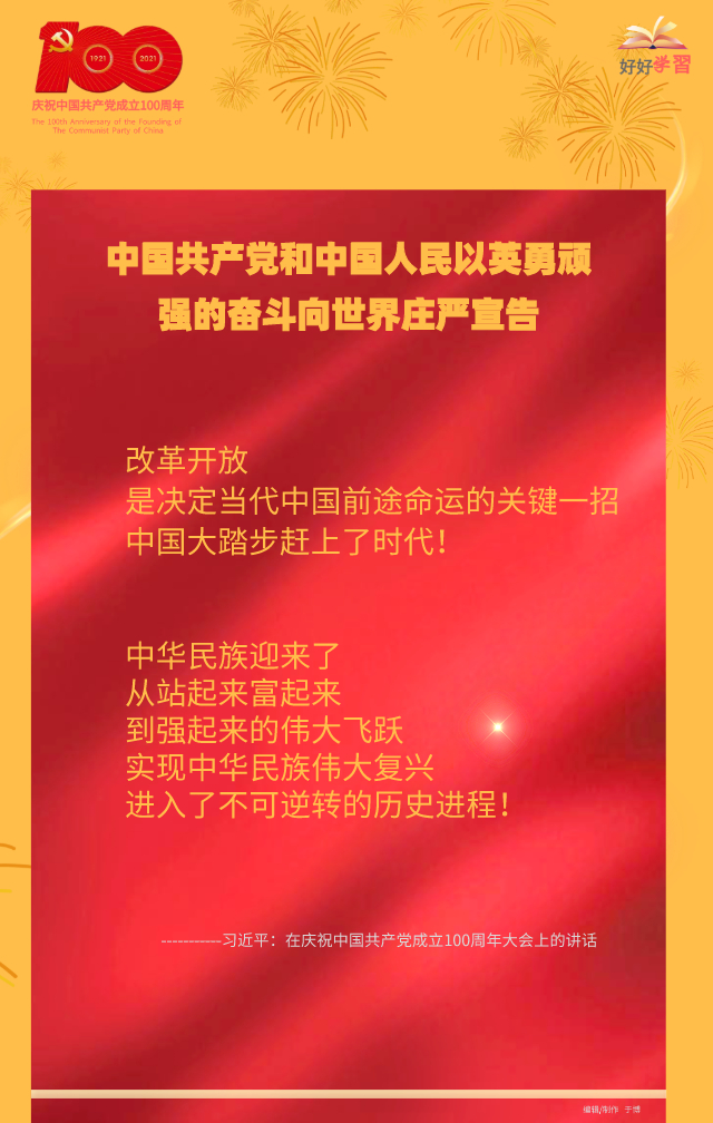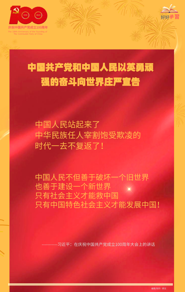 海報(bào)|習(xí)近平在慶祝中國共產(chǎn)黨成立一百周年大會上重要講話金句