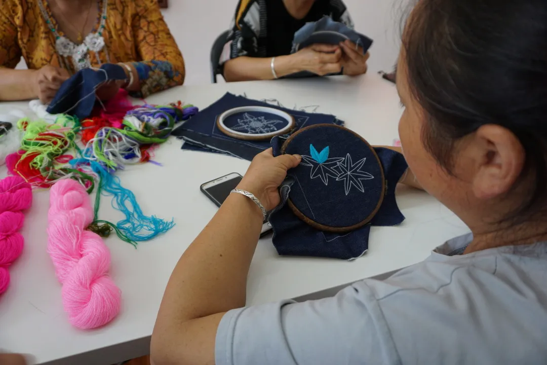 “上午采茶,下午到這里刺繡?!闭麧嵜髁恋牟厍伎椑C夾關傳習所里,4名夾關鎮(zhèn)婦女正聚在這里刺繡?!安厍即汤C農閑培訓課”已舉辦了5期,采用師徒制模式培訓當?shù)剞r村婦女80余人次。學員技術嫻熟后,利用農閑時間刺繡創(chuàng)作,并將個人刺繡作品通過刺繡館銷售,“個人+刺繡館”模式帶動農村婦女年增收1萬元左右。這些婦女們手法熟練,半天便可一人繡得一幅。
